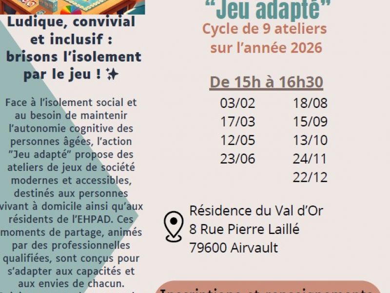 Cette année 2026, nous avons mis en œuvre un projet de jeux adaptés au sein de notre résidence, initié par la plateforme "Appui et Vous Nord 79".